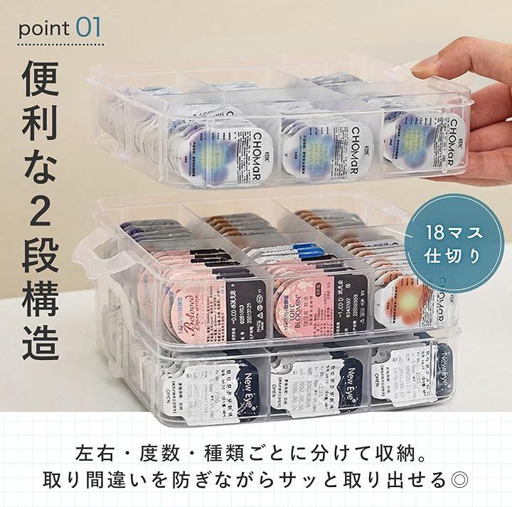 Contact Lens Storage Case, Colored Contact Lens Storage Box with Lid, 18 Compartments
