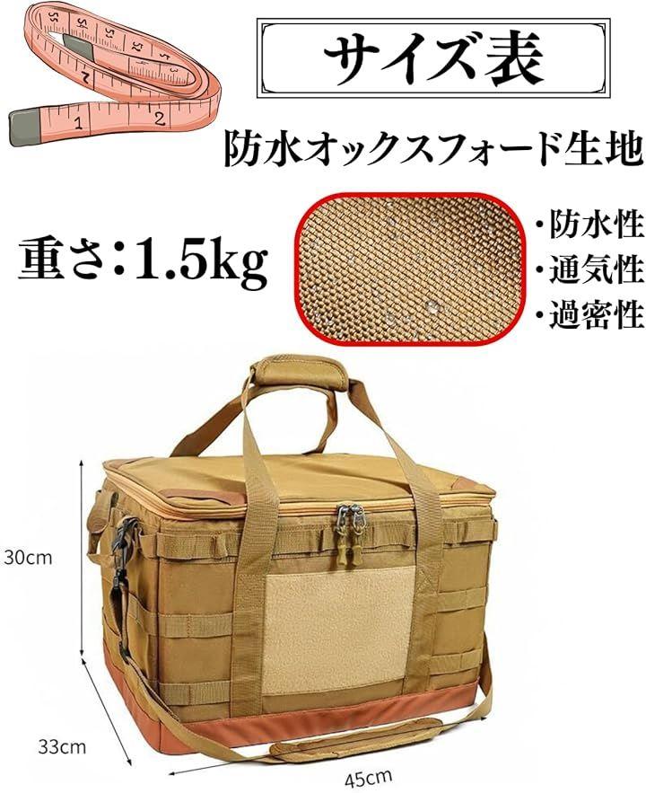 容量はたっぷり入る45Lで、キャンプギアやツールを余裕を持って収納できます。