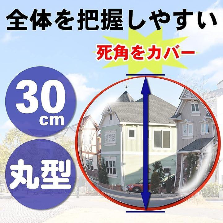 *丸型鏡面が30cmで死角をカバーし店舗での万引き防止や駐車場、車庫や曲がり角での事故を防止。