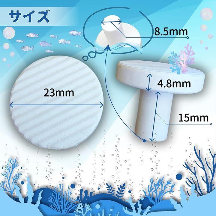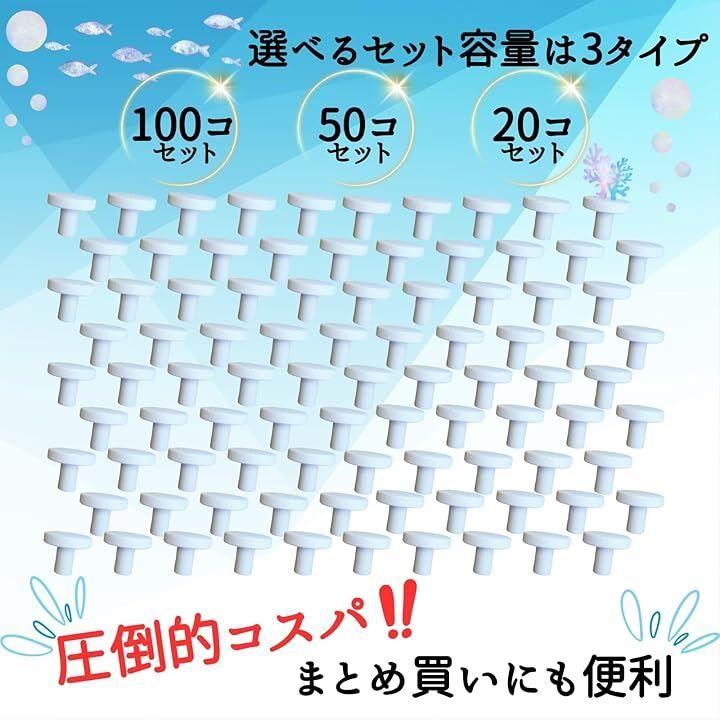 「商品仕様」 ・サイズ: 台座直径約23mm ・材質: 高品質セラミック ・カラー: ホワイト ・形状: T型スタンド ・セット内容: 20個、50個、100個セット ・用途: サンゴ固定、フラグ作成、増殖、培養、アクアリウムレイアウト、台座、海水・淡水両対応
