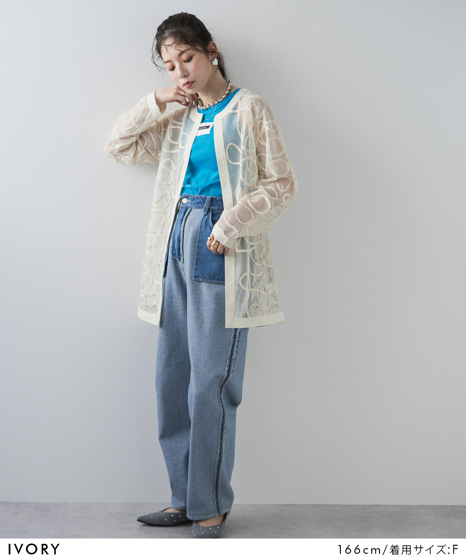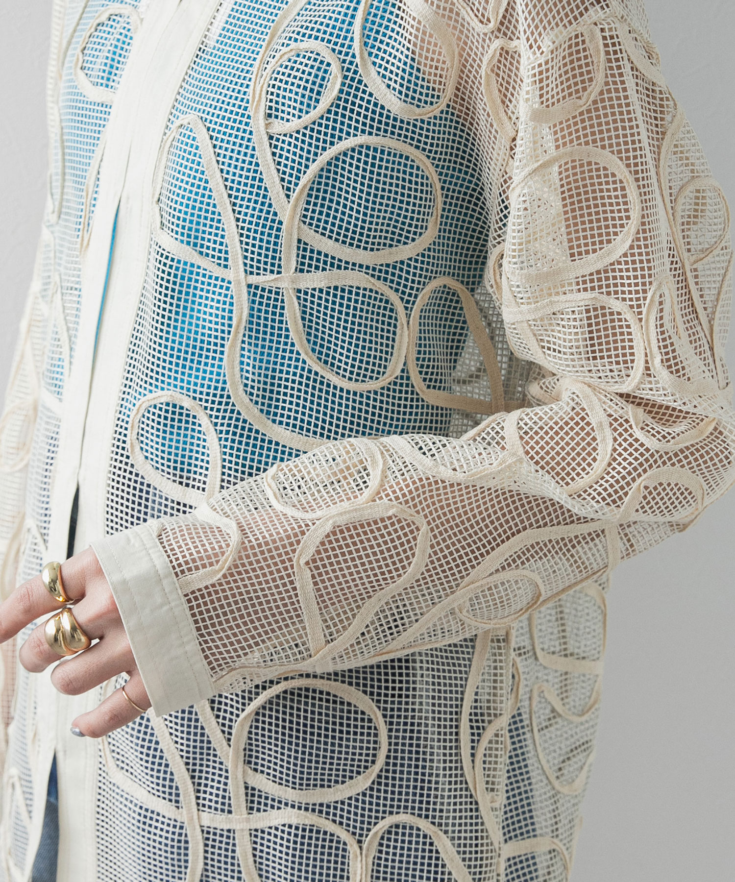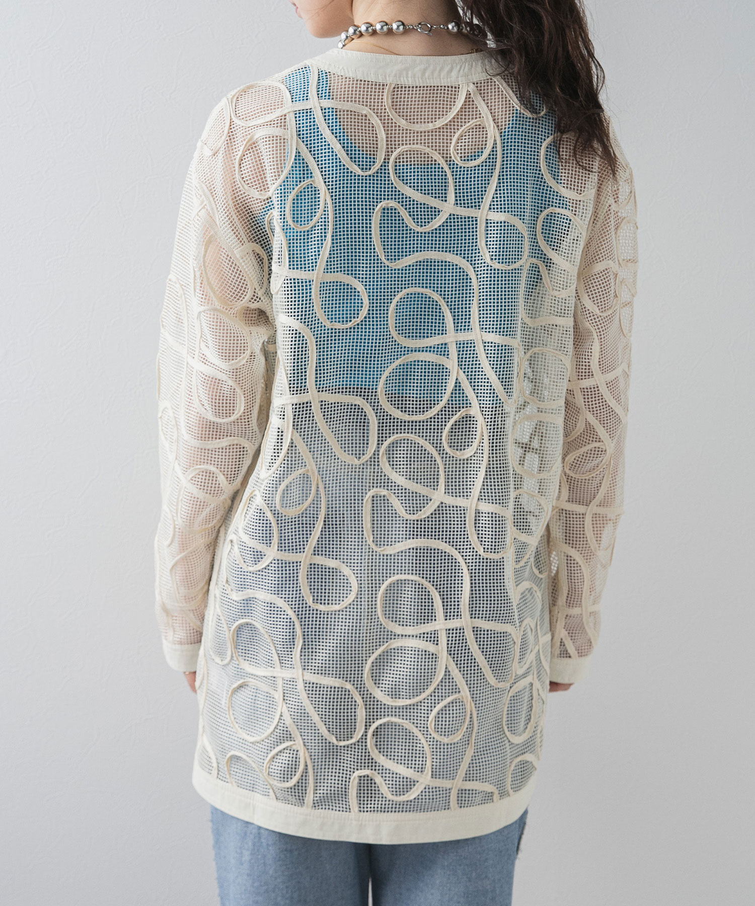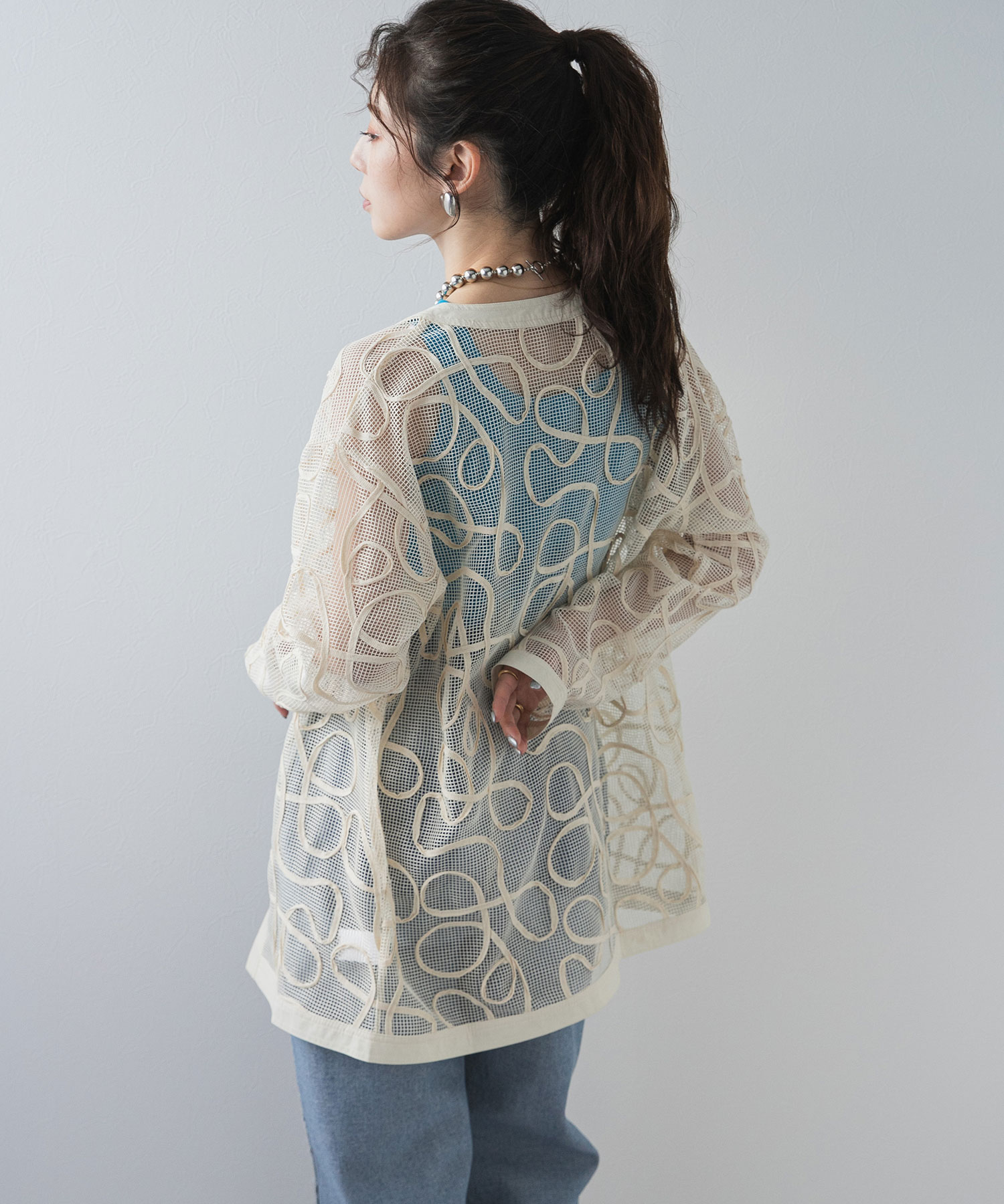 メッシュ×コード刺繍がpoint