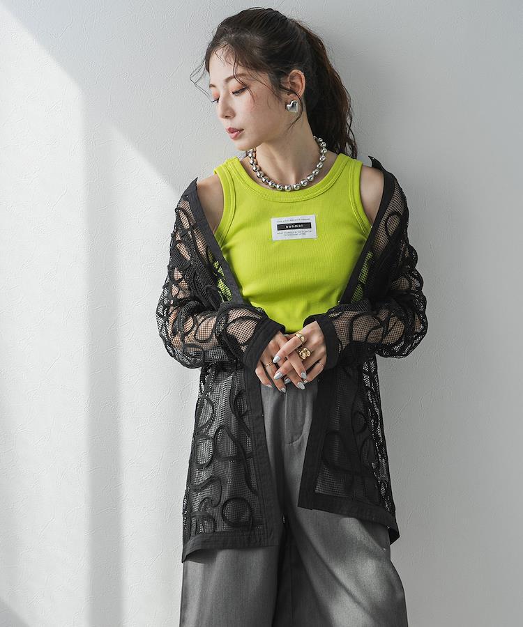 インナーには軽さのある、タンクトップやキャミソールがおすすめ。