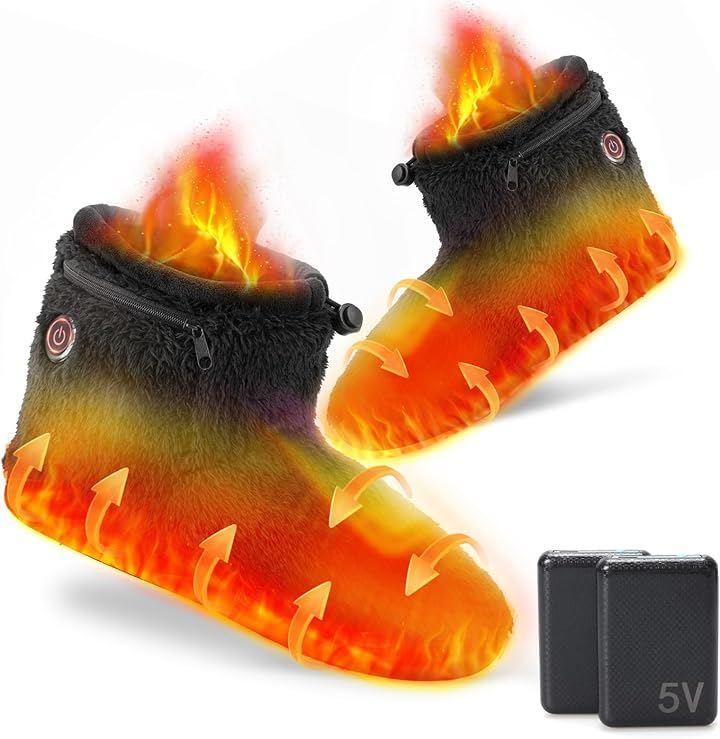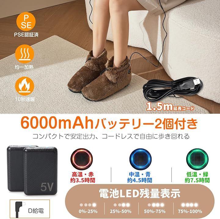 「6000mAhバッテリー2個付き」2025新版電気スリッパはDC5V/2.1A安定出力の6000mAhバッテリー2個付き、高温モードで約3.5h、中温モードで約5h、低温モードで約7.5h連続使用できます。