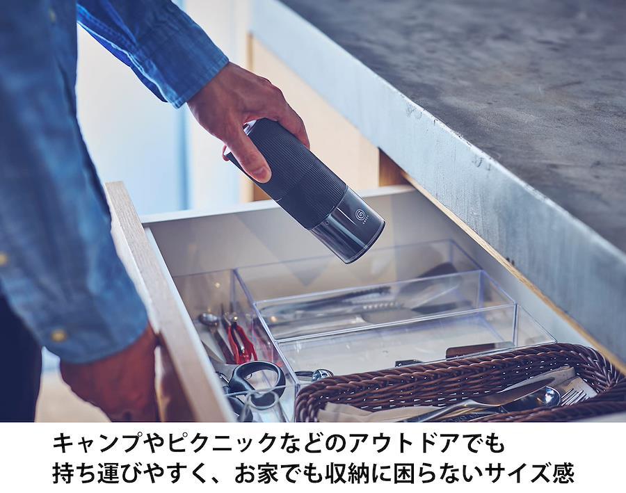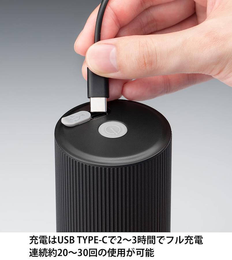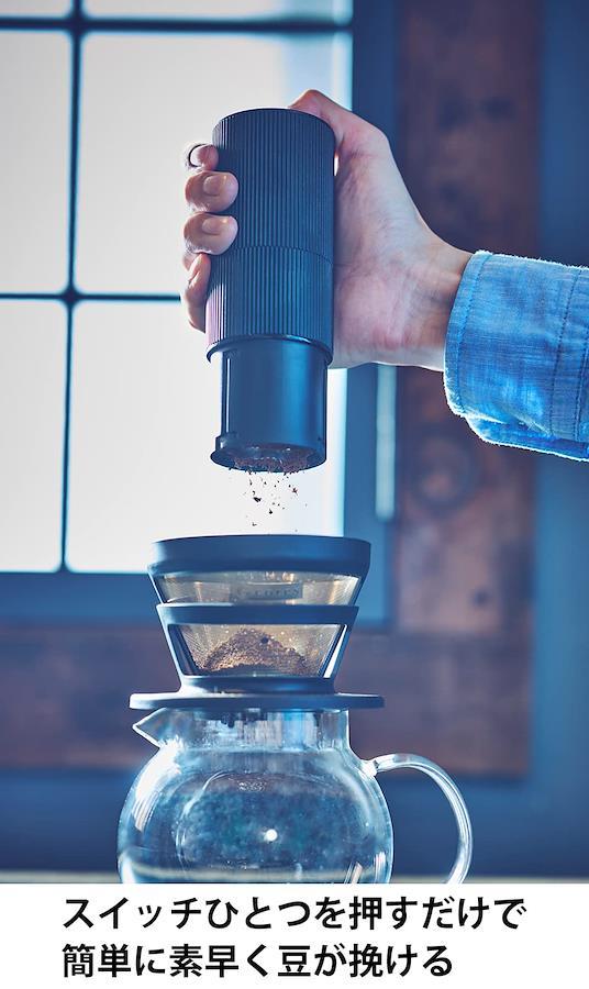 3営業日以内に発送≪新品未開封品≫:サイズ:約幅6×奥行6×高さ16cm、本体重量:約450gセット内容・付属品:本体、携帯用袋、充電用USBケーブル、掃除用ブラシコーヒー豆容量:20g連続使用回数:約20~30回 ※使用状況によって変動フル充電時間:約2~3時間、コードの長さ:約0.44m