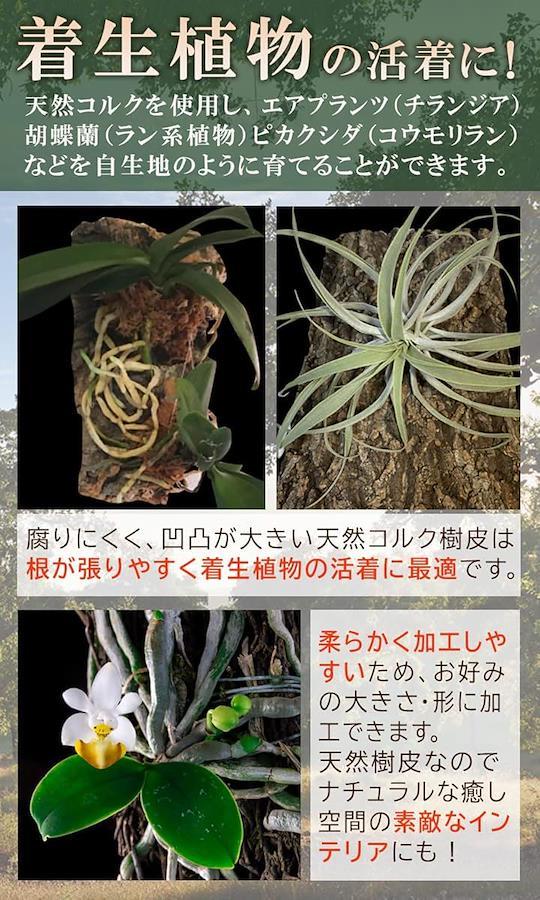 「着生植物の活着に。」 天然コルクを使用し、エアプランツ(チランジア)胡蝶蘭(ラン系植物)ピカクシダ(コウモリラン) などを自生地のように育てることができます。