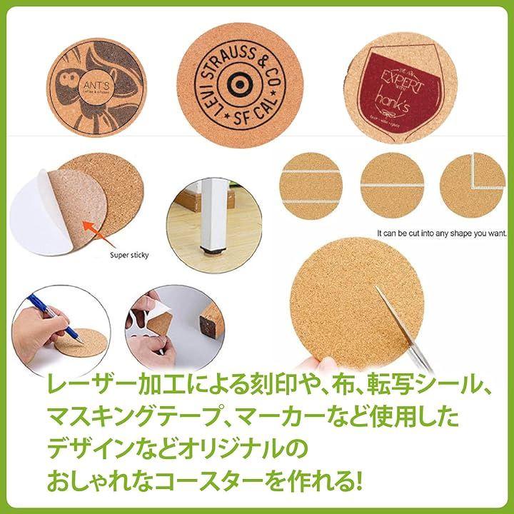 「ZERONOWA コルクコースター 裏面シール付き 粘着剤 直径90mm 厚さ2mm DIY 手作り」