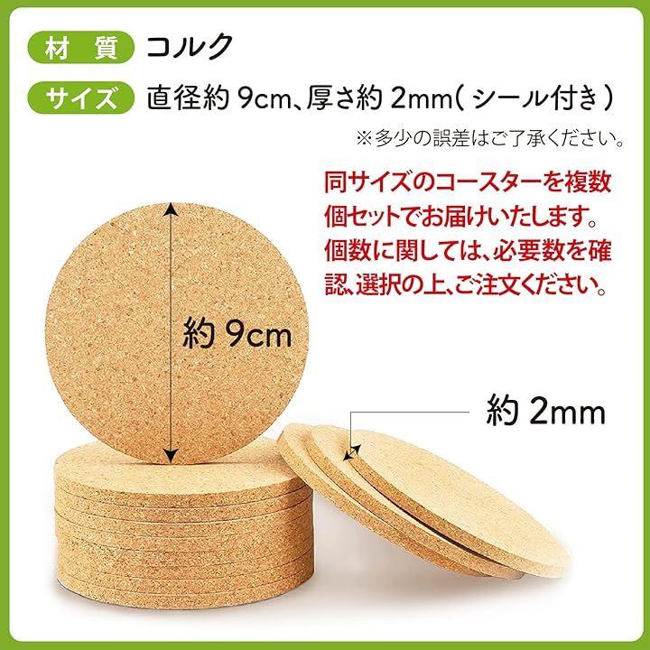 ・材質:コルク/サイズ:直径約9cm、厚さ約2mm(裏面シール付き) *多少の誤差はご了承ください。
