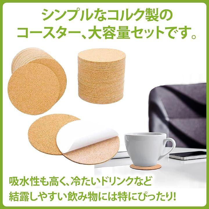 ・裏面粘着剤のコルク製コースター、大容量セットでお届け。