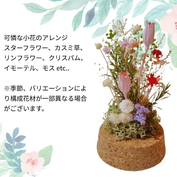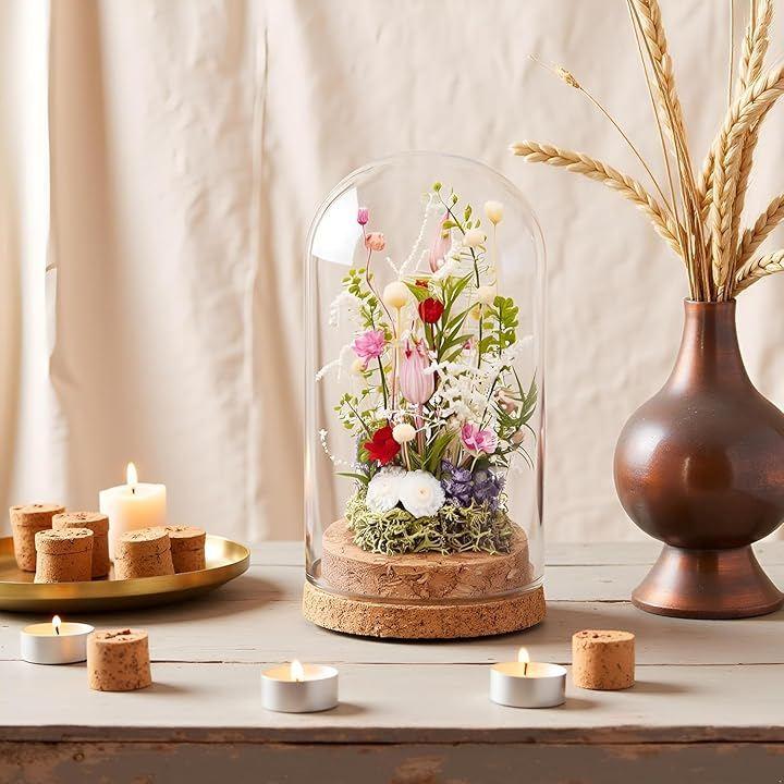 Cork glass dome small flower arrangement, preserved flowers, dried flowers