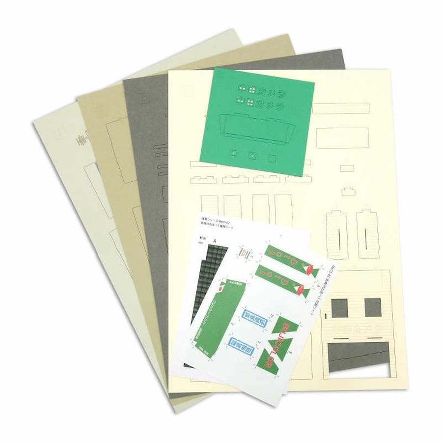 セット内容:レーザーシートA〜E(5枚)、印刷シート(1枚)、屋根シート(1枚)プラ板(1枚)、組立て説明書