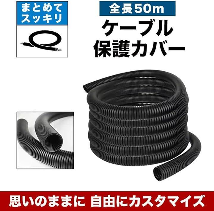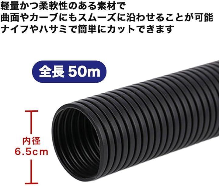 配線チューブ コルゲートチューブ 黒 50m 内径6.5mm は、家庭や自動車、バイク、産業機器など幅広い用途に対応できるケーブル保護チューブです。