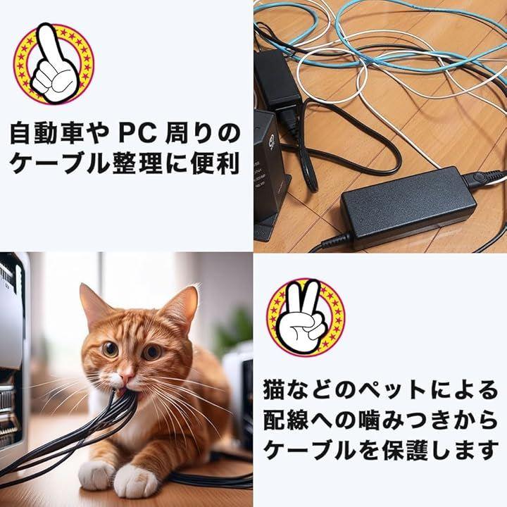テレビ裏のケーブル整理や、車・バイクの配線補強、屋外設備のケーブル保護など、あらゆる場面で役立つアイテムです。