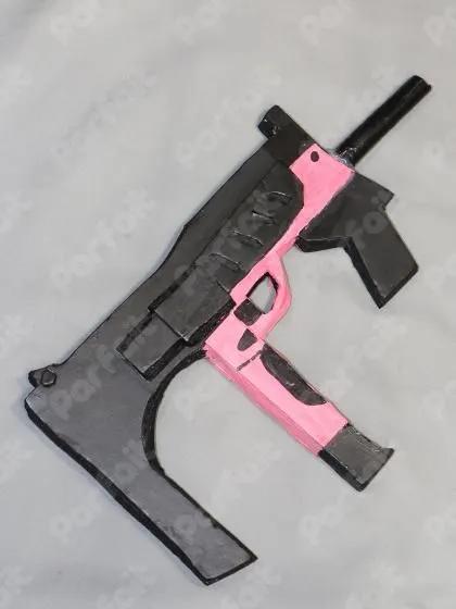 【セット内容】模造銃【コメント】造形ボードで自作された、ボリューム仕様の模造銃です。縦約28cm横約44cm幅約2.5cmで、ボード製のため軽量です。実用性はありません。模様は手書きで再現されており色ムラなどが見られます。ボードを貼り合わせて作られており、貼り合わせに剥がれや側面に凹凸が見られます。