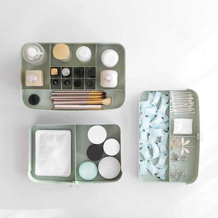 スキンケア製品、口紅、マニキュア、アイライナー、ネイルカラー、メイクブラシ、チーク、アイブロウ、スティックファンデーション、美容グッズ、ネックレスや指輪など、その他いろいろな小物、コスメ用品を収納できます。