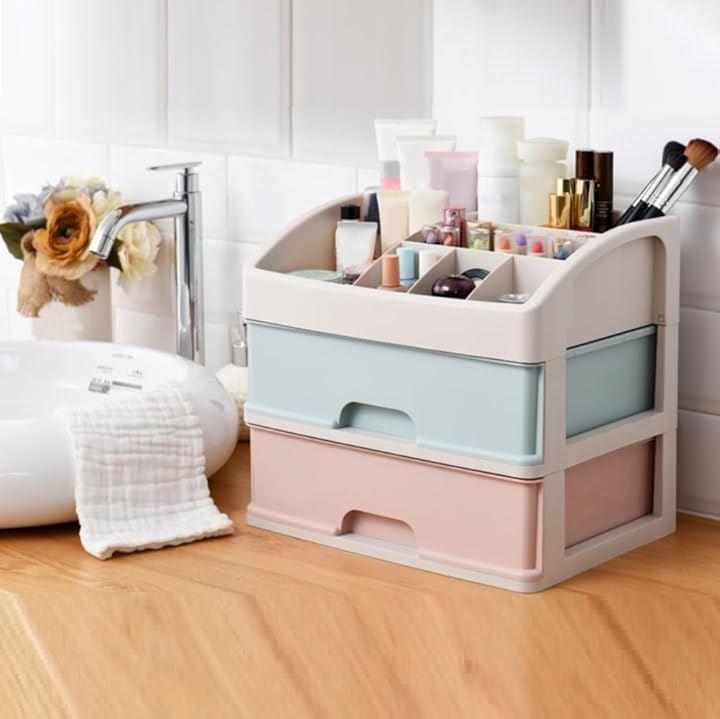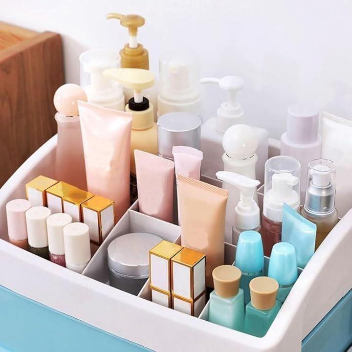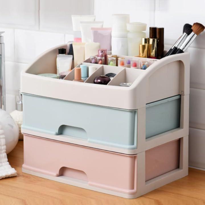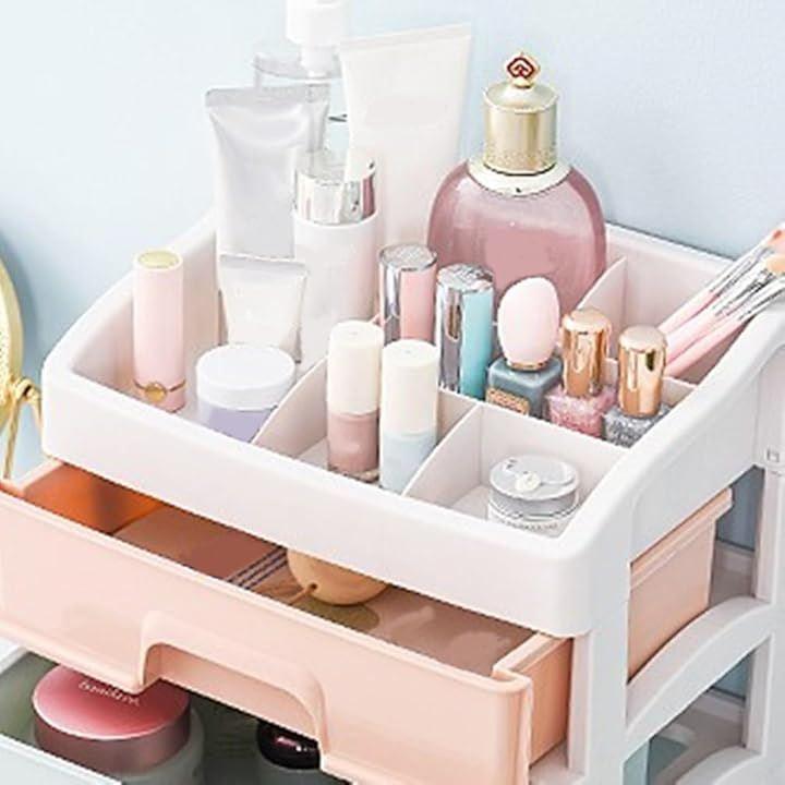 スキンケア製品、口紅、マニキュア、アイライナー、ネイルカラー、メイクブラシ、チーク、アイブロウ、スティックファンデーション、美容グッズ、ネックレスや指輪など、その他いろいろな小物、コスメ用品を収納できます。