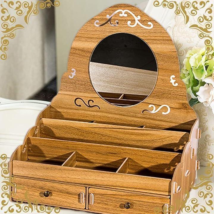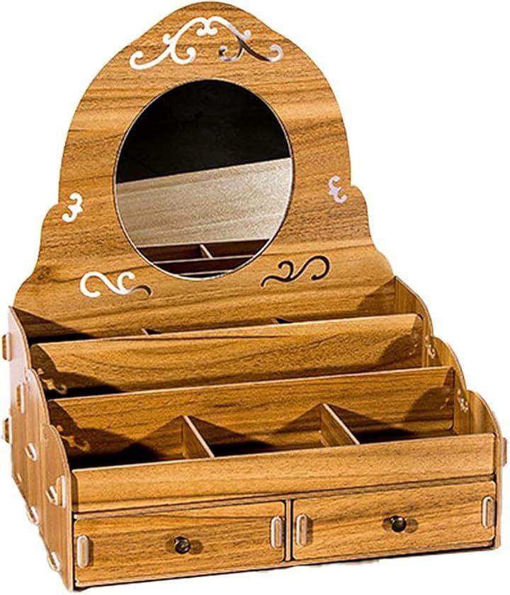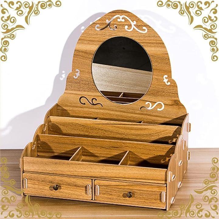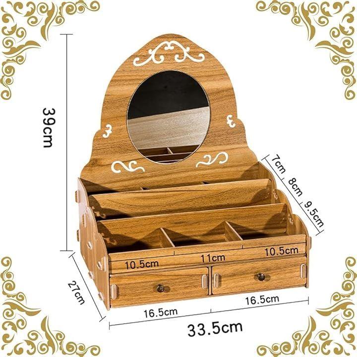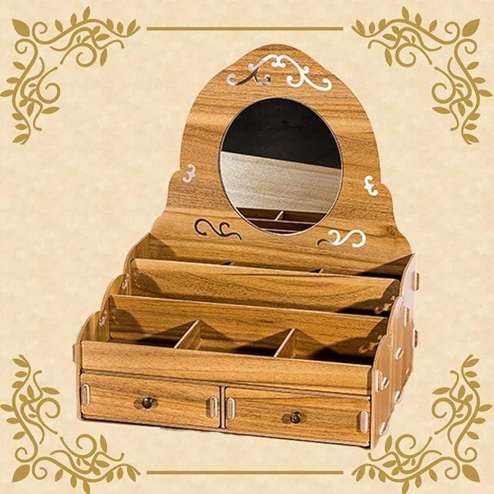 Cosmetic box, makeup box, mirror, with makeup mirror, cosmetic storage case, tabletop multi-storage, accessory storage, drawer, rack, N-J74