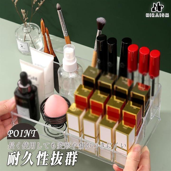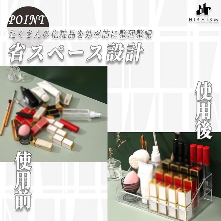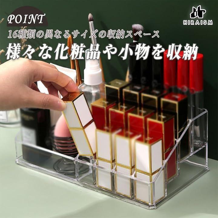 16種類の異なるサイズの収納スペースで口紅や化粧ブラシ、ネイル用品、香水など、様々な化粧品や小物を収納できます。