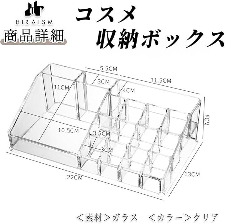 「商品内容」コスメ収納ボックス <サイズ>長さ約13cm、高さ約8cm、幅約22cm <重量>320g <素材>アクリル