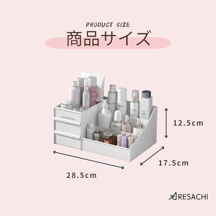 引き出しや仕切りがたくさんあるので、リップやアイシャドウなどの小さなアイテムもすっきり整理できます。