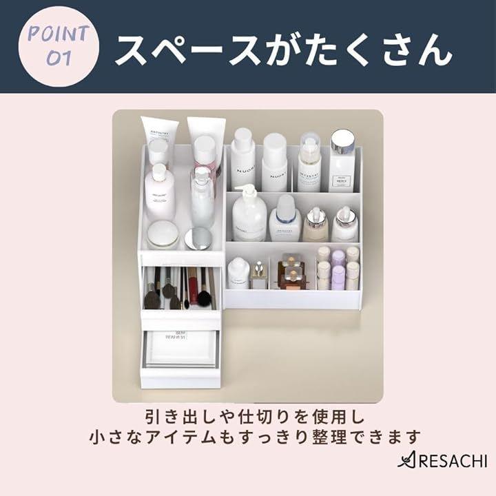 「たっぷり収納」化粧品や小物をたくさん収納できる大容量の設計です。