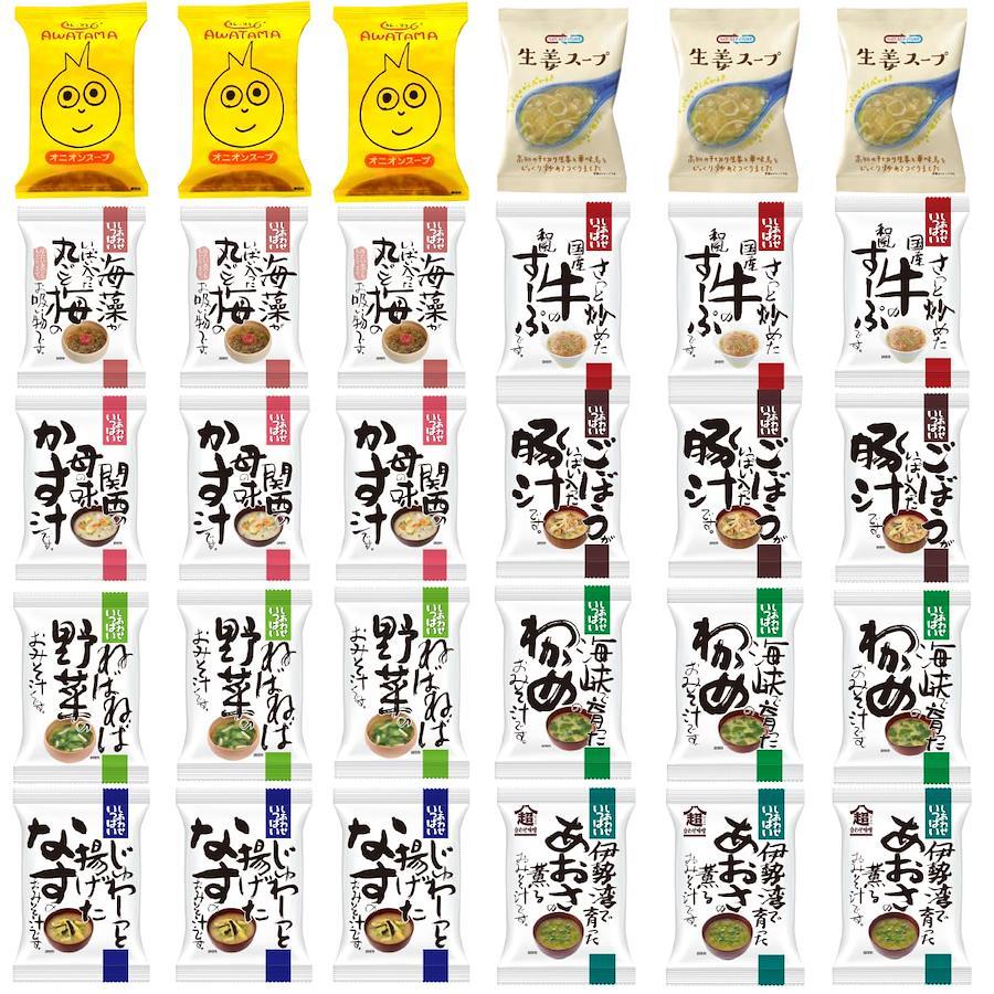 3営業日以内に発送≪新品未開封品≫お湯でもどして簡単にお召し上がりいただけます。10種類のおみそ汁やスープが入った30食入りのセットです。軽いので、山登りやお弁当のお供にもオススメです。【重要】メーカーによる商品リニューアルに伴いパッケージ(内容量も含む)変更が行われた場合、新パッケージでお届け致します事ご了承願います。