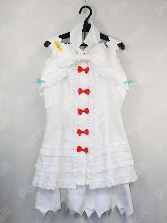 【セット内容】ワンピース、スカート、腕飾り、髪リボン【生地の種類】ポリエステル【コメント】自作風の通常衣装です。バスト約91cmウエスト約76cmで、スカートはゴムウエストです。縫製は比較的綺麗です。リボンはサテン生地で作られており内側にワイヤーが入っています。ワンピース背面の花飾りには綿が入っています。