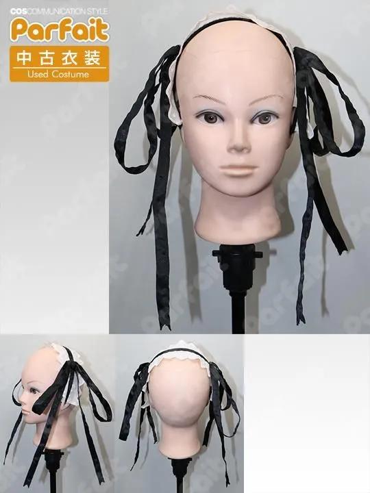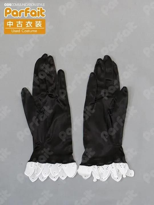 【セット内容】ワンピース、襟パーツ、手袋、カチューシャ【生地の種類】ポリエステル【コメント】自作風の通常衣装です。バスト約92cmウエスト約78cmで、縫製は比較的綺麗です。ワンピースは背面ファスナーで着脱でき、フリルはレースリボンを使用しています。カチューシャのリボン部にはワイヤーが入っており形状が固定できます。