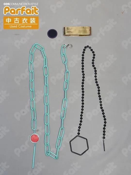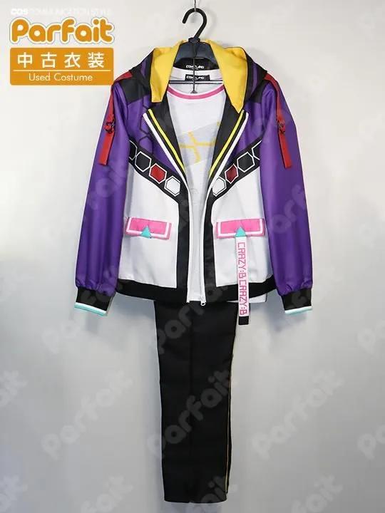 【セット内容】上着、Tシャツ、ズボン、首飾り、腰チェーン、腕飾り【生地の種類】ポリエステル【コメント】COMICLAND製。比較的状態の良いCrazy:B仕様の楽曲衣装です。上着のみXLサイズ表記でバスト約108cmです。衣装柄は昇華プリントで再現されており、Tシャツの模様はプリントです。ズボンはウエストに一部ゴムが入っておりポケットには実用性があります。ヘッドセットの飾り部分のみ付属しています。上着ポケットの装飾と腕飾りは合皮製で状態は比較的良好です。(2025/11時点)