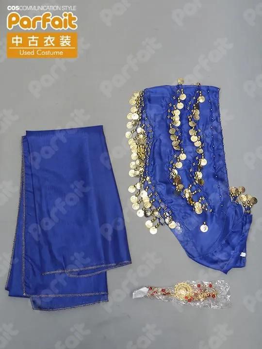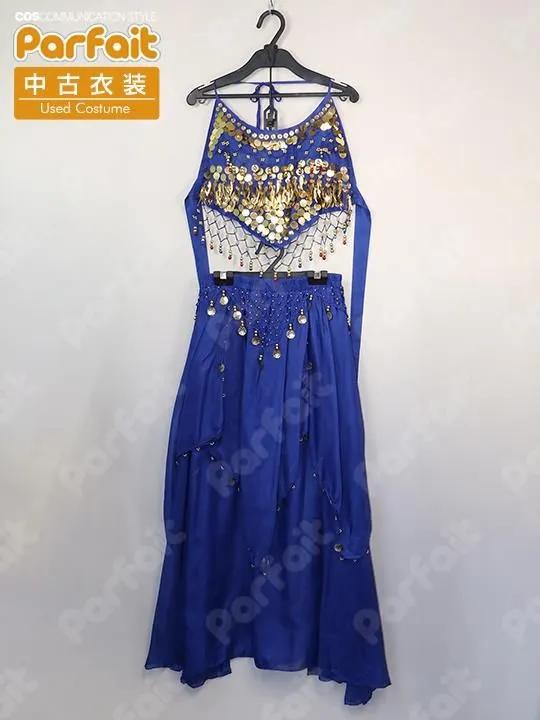 【セット内容】トップス、スカート、腕飾り、頭ベール、ストール【生地の種類】ポリエステル【コメント】比較的状態の良い踊り子風の衣装セットです。スカートはゴムウエストで約62-94cmに可変します。トップスは首と背中の紐で着脱します。