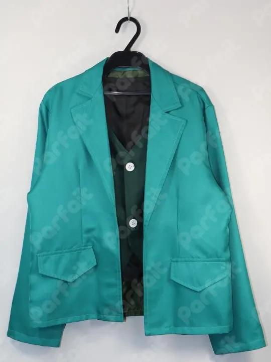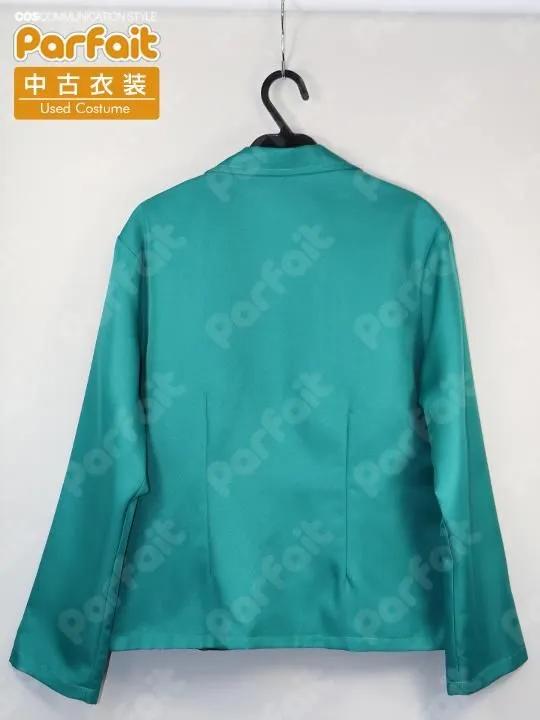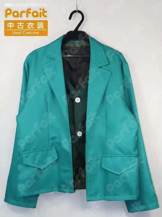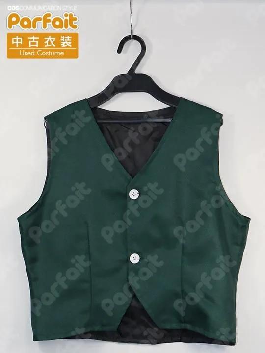 【セット内容】上着、ベスト【生地の種類】ポリエステル【コメント】汎用的な緑色のスーツ衣装です。バスト約104cmです。ベストはボタンが2つ付いています。上着はボタンがない正面オープンの形状です。ポケットはフェイクです。