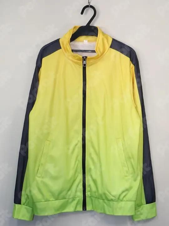 【セット内容】ジャージ上【生地の種類】ポリエステル【コメント】未使用の黄色ジャージ単品商品です。衣装柄や文字は昇華プリントで再現されており、ポケットには実用性があります。裏地にメッシュ生地が使われています。