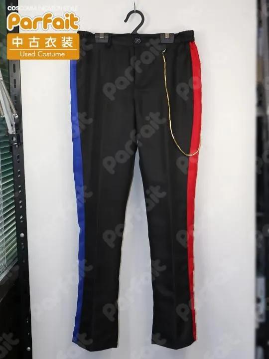 【セット内容】上着、ベスト、ブラウス、ズボン、ネクタイ、腰チェーン、手袋【生地の種類】ポリエステル【コメント】COMICLAND製。キャラクター共通のアイドル衣装です。金ラインは合皮製で劣化はほぼ見られません。(2025/11時点)ブラウスはやや伸縮する生地で作られており、袖の脇部に若干黄ばみがあります。手袋の手首ラインがありません。