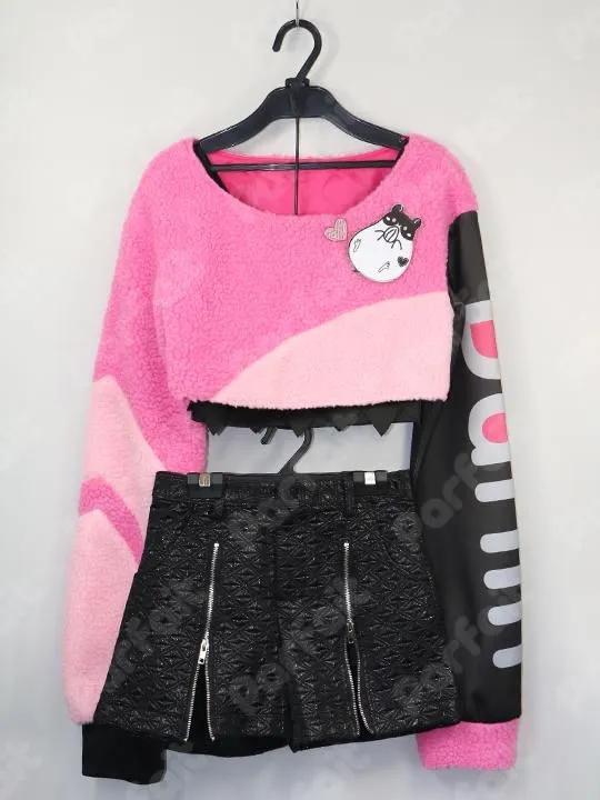 【セット内容】上着、タンクトップ、半ズボン、胸バッジ、チョーカー、サスペンダー、腰ベルト2種、靴下、帽子、ウィッグ、靴(約23.0cm)【生地の種類】ポリエステル【コメント】ウィッグと靴が付属した衣装セットです。バスト約74-88cmウエスト約65cmでやや大きめです。腰回りの装飾品がありません。上着は主にボア生地で、左袖に昇華プリントの伸縮生地が使われています。タンクトップは伸縮生地です。ズボンは厚手で光沢のある立体的な柄生地です。靴下の柄は昇華プリントです。靴やベルト類・帽子のつばは合皮製で状態は比較的良好ですが、ベルトなどにやや折れ目がついています。細い腰ベルトは若干仕様が異なります。(2025/11時点)ウィッグはツインテールの形状に加工されており、前髪にカット加工があります。帽子のつば模様に一部塗料剥がれがあります。
