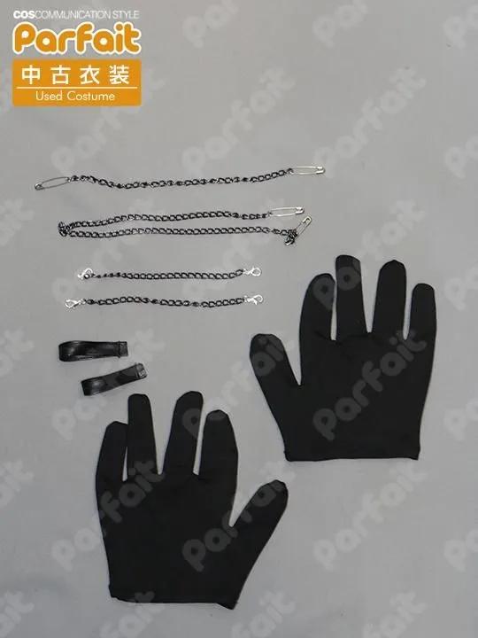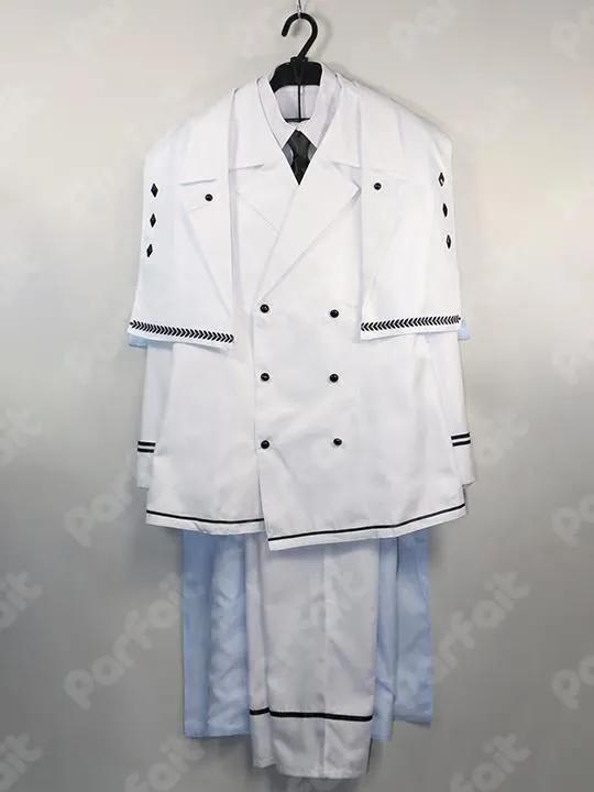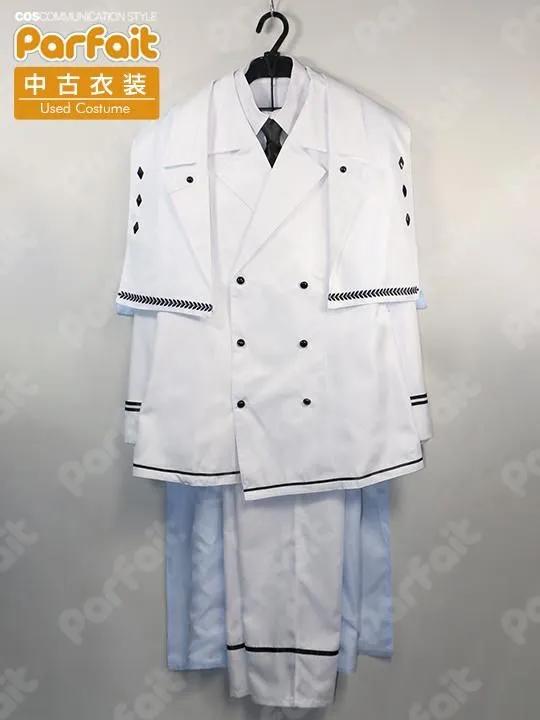【セット内容】マント、上着、ブラウス、ズボン、ネクタイ、ベルト、手袋、チェーン類、帽子【生地の種類】ポリエステル【コメント】CGcosplay製。未使用品の男性用スキン衣装(韓国版専用:アーティスト(イラストレーター)とのコラボ)です。バスト約104cmウエスト約78cmで女性XLサイズ相当です。ズボンのウエストには一部ゴムが入っています。マントのケープ部や上着袖部の模様は昇華プリントです。
