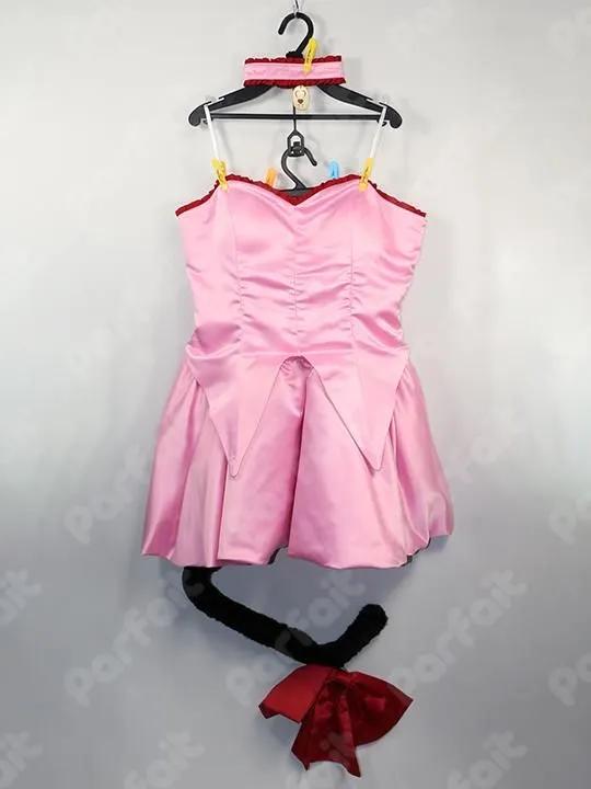 【セット内容】ワンピース、チョーカー、手袋、腕飾り、太もも飾り、しっぽリボン鈴、耳パーツ、ウィッグ、靴(26.0cm)【生地の種類】ポリエステル【コメント】miccostumes製。靴とエアリー製のウィッグが付属したバトルコスチュームです。バスト約102cmウエスト約87cmです。マットサテン系の生地で作られており、背面リボン編み上げで若干サイズの融通が利きます。ワンピース腰回りの縫製に生地引きが見られます。しっぽパーツはワンピースの内側に縫い付けられています。チョーカー飾りや手袋の装飾品・靴は合皮製で状態は比較的良好です。(2025/11時点)ウィッグは前髪などにカット加工があります。
