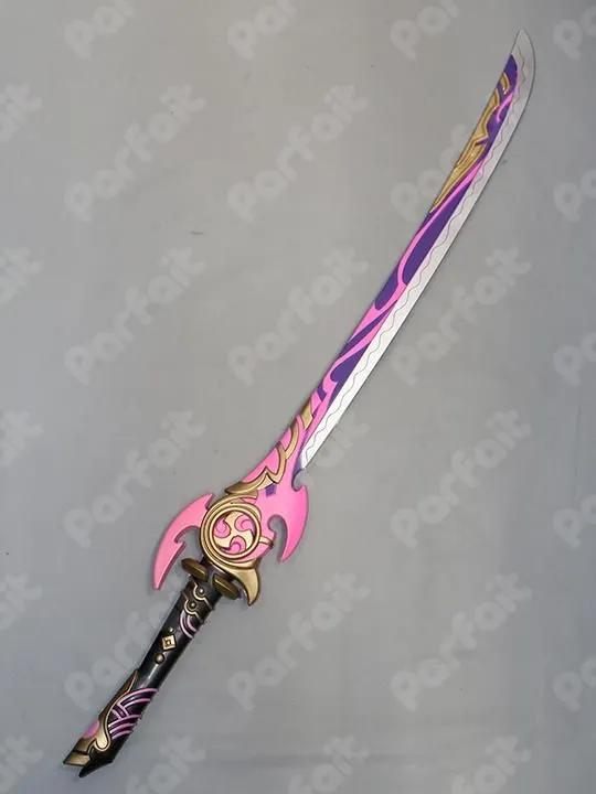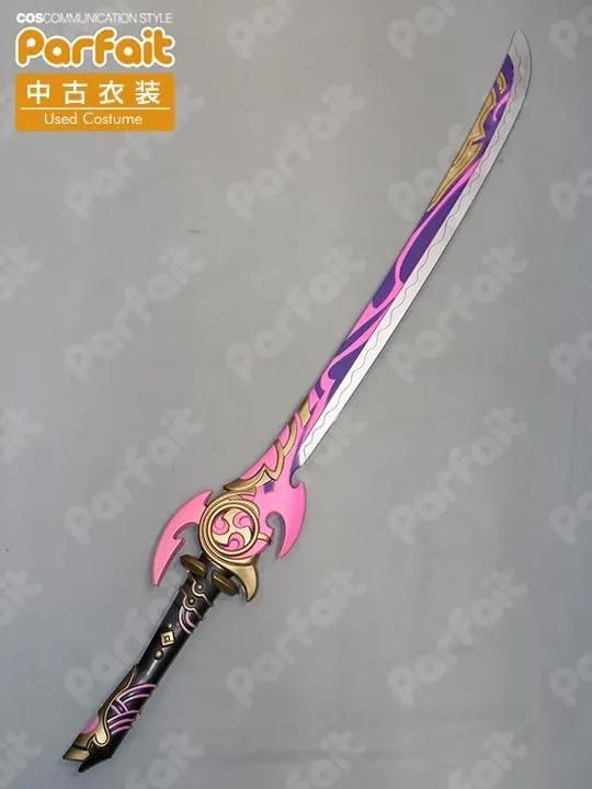 【セット内容】模造剣(約106cm)【コメント】比較的状態の良い片手剣型の模造武器です。全長約106cm刀身部分の長さ約67cmです。PVC系の樹脂素材で作られておりやや弾力があります。黒ベースの素材に塗装されており、表面の塗装に一部小さな剥がれなどが見られます。※長尺物のため、通販価格と店頭販売価格が異なります。