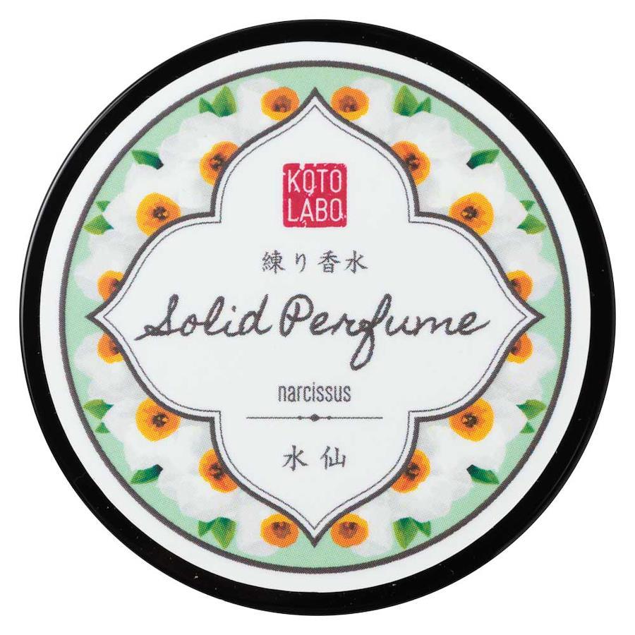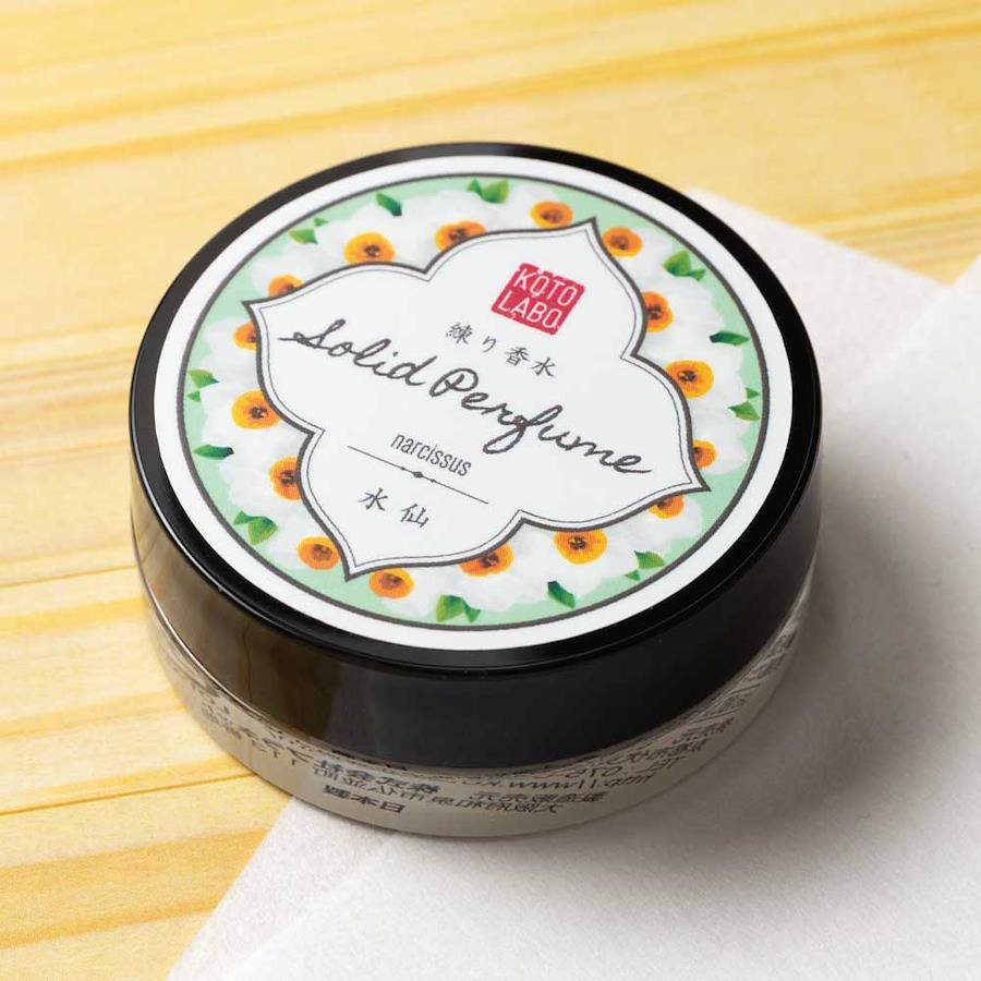 京都の化粧品メーカー「コトラボ」が製作した練り香水です。古くは「雪中花」と呼ばれ、冬枯れの景色に可憐に彩りを添える、「水仙(スイセン)」をイメージした、上品で優しい香りの練り香水です。