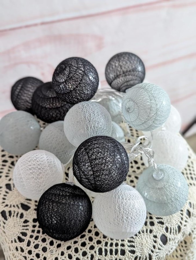 コットンボールライト=直径6センチx20個 長 さ=3メートル 材 質=銅線、PVC、コットン 生産国=中国