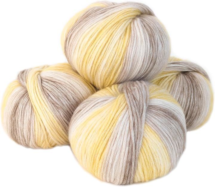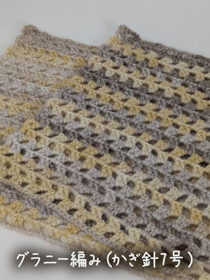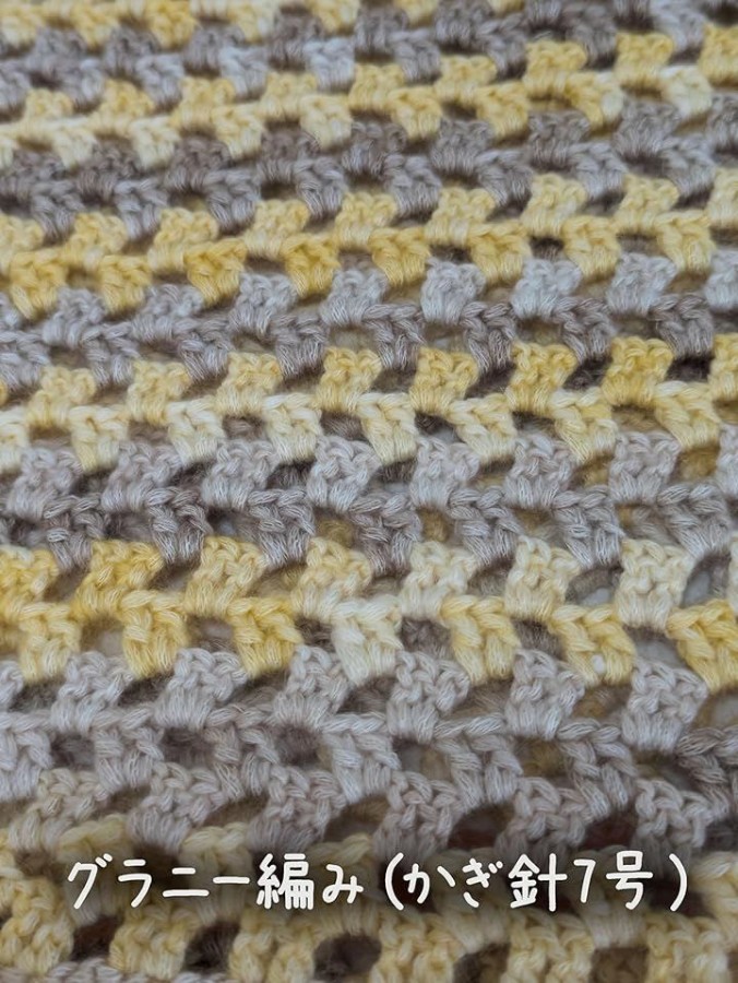1本の糸をどんどん編み進めるだけで、おしゃれなまだら模様があらわれる楽しい編み糸です。