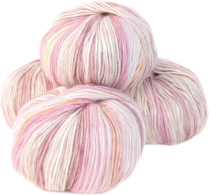 1本の糸をどんどん編み進めるだけで、おしゃれなまだら模様があらわれる楽しい編み糸です。