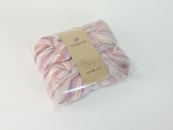 コットンとアクリルをメインにウールを混紡したもっちりふんわりしたマルチカラー毛糸です。