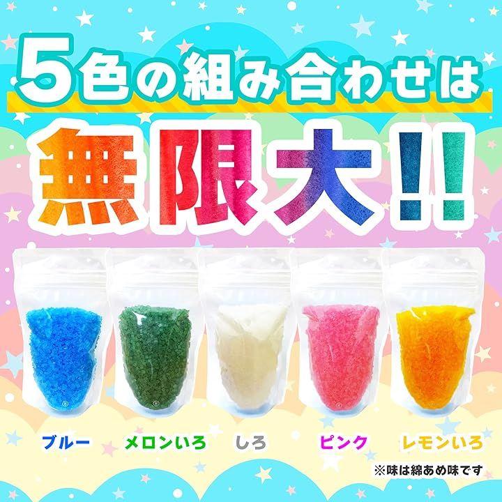 名称:綿菓子用ざらめ 5色セット (白・ピンク・黄・緑・青)