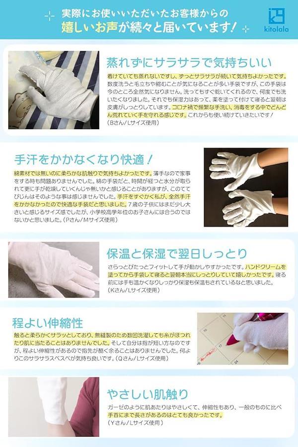 高品質生地で優しく保湿してくれるため家事や就寝時の手荒れケアにおすすめです。