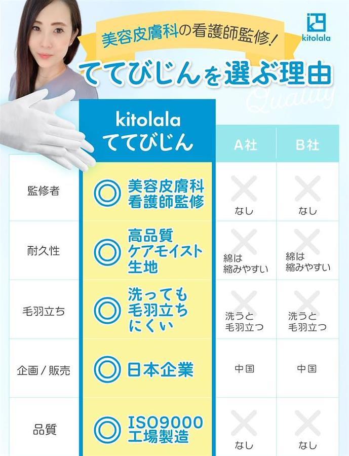 高品質生地で優しく保湿してくれるため家事や就寝時の手荒れケアにおすすめで。