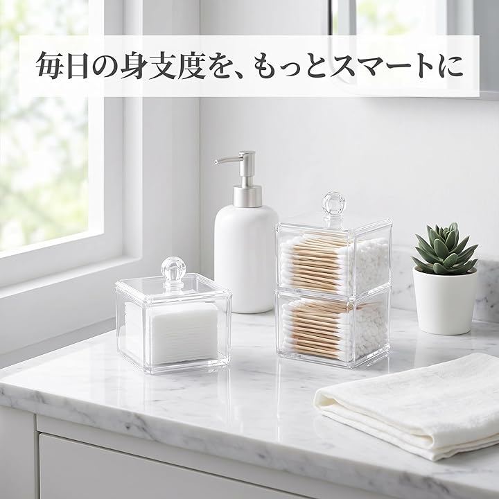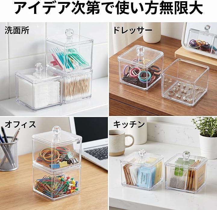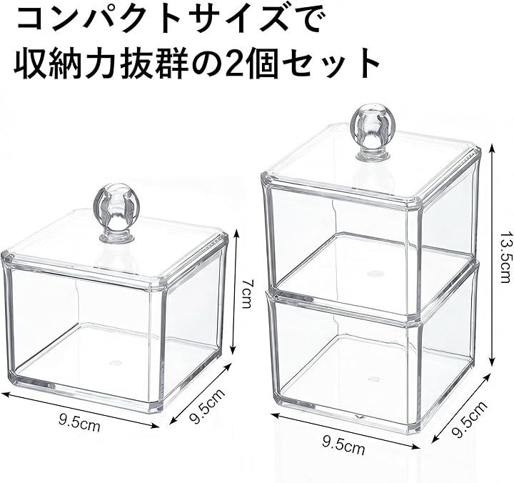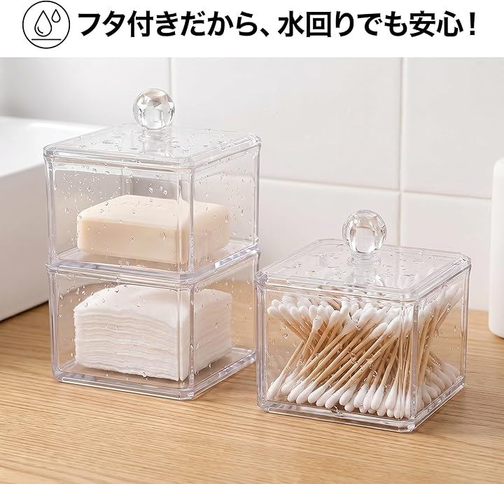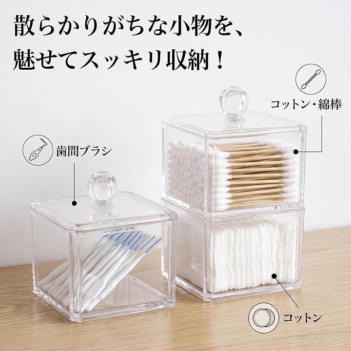 「散らかりをスッキリ解消」 綿棒・コットン・歯間ブラシがひと目でわかる透明アクリル製収納ケース2個セット。
