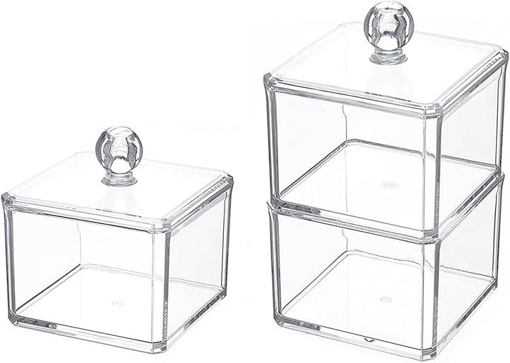 Cotton Swab Case, 1-Tier/2-Tier, 2-Pack, Acrylic, for Cotton Swabs, Interdental Brushes, Multipurpose, Small Items, Cosmetics, Makeup, Tabletop, Compact Storage Holder, with Lid, Waterproof, Clear