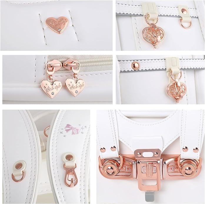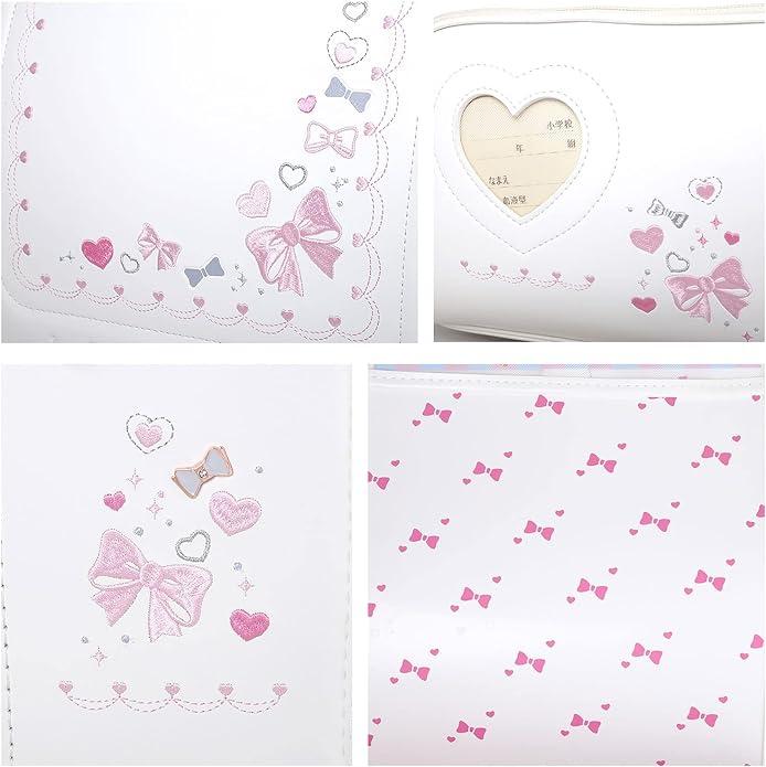 Coulomb ランドセル ,リボンとハートのモチーフを用いた、お姫様のような豪華な印象。反射プレス、ローズゴールド金物