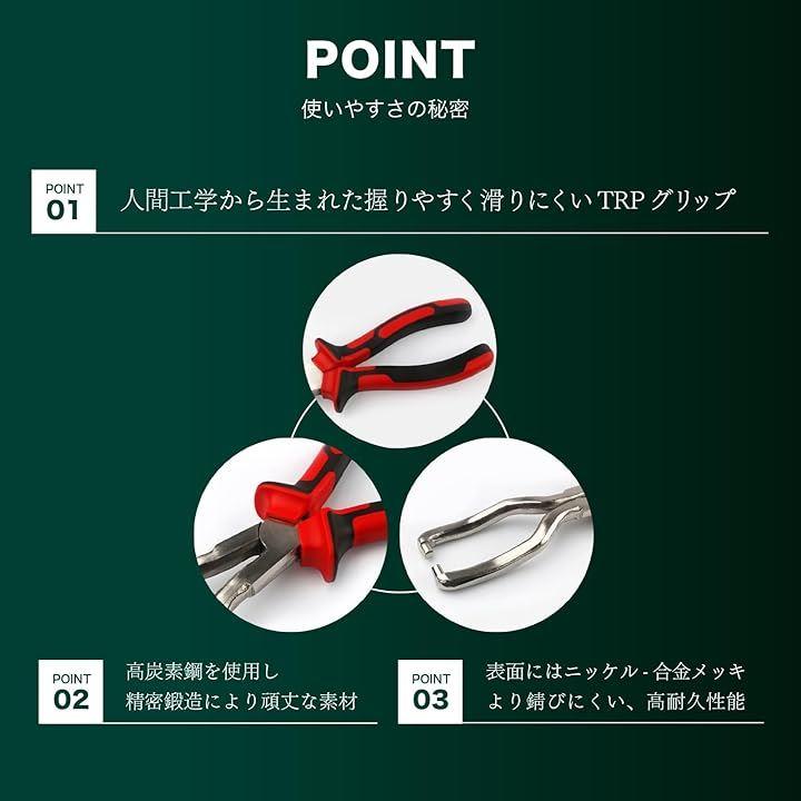 燃料ホースや配線カプラーのクリップを簡単かつ安全に外せる設計で、プロの整備士からホビー愛好家まで幅広くお使いいただけます。