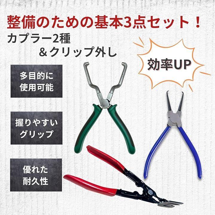 「プロ仕様の3点セットで作業効率アップ」カプラー外し2種とクリップ外しが1つになった、整備に必要な基本ツールを揃えた3点セット。