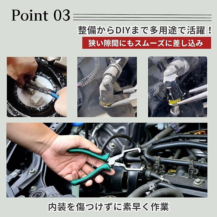 「クリッププライヤーで内装作業も効率化」ドアパネルやトリム、ピン、リベットの取り外しに便利なクリップリムーバーもセットに。